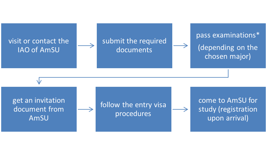 *Approved deadlines for submitting documents to Bachelor’s, Master’s, and Specialist’s programs are noted in AmSU Admission Regulations (please visit www.amursu.ru/postuplenie/)